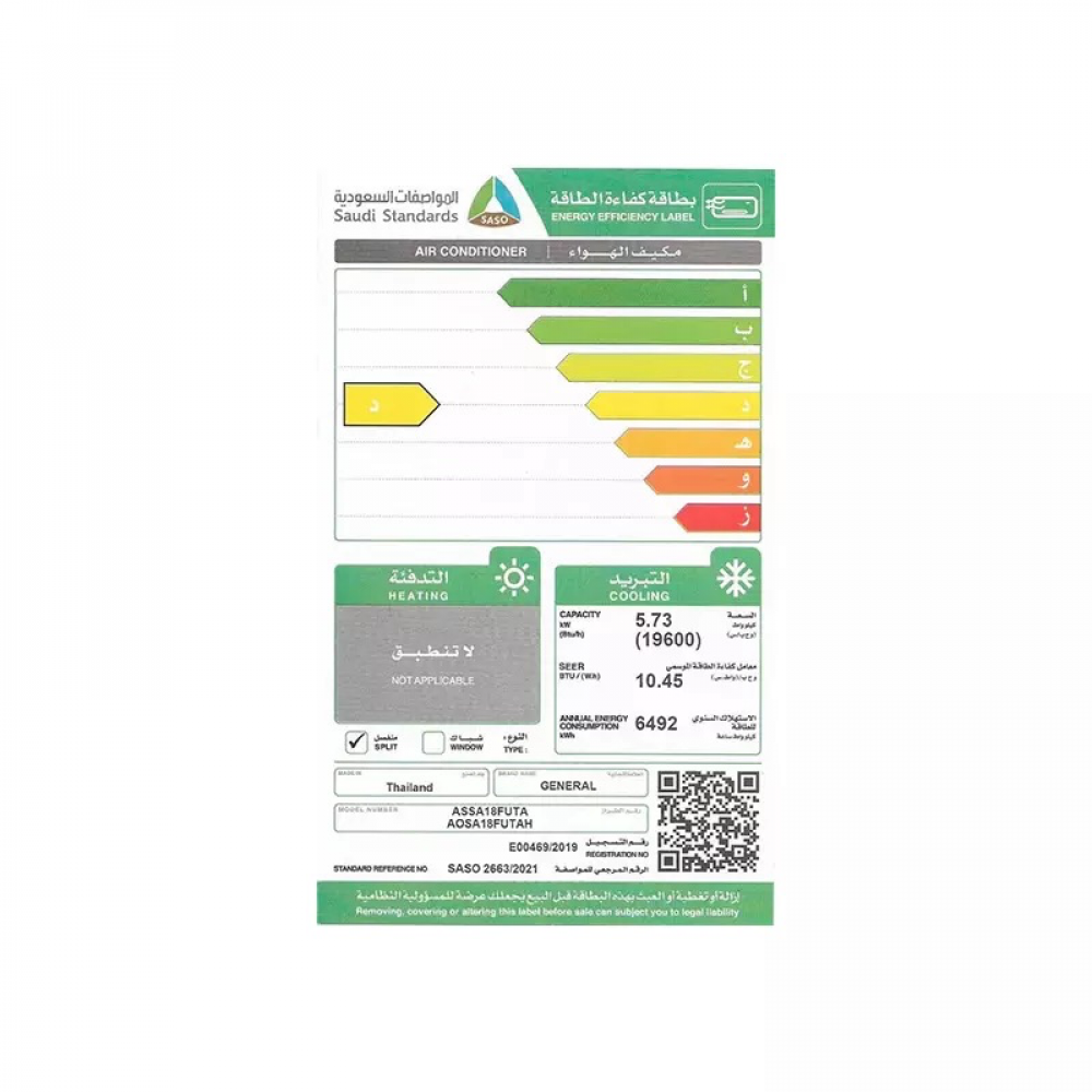 مكيف او جنرال 18اسبلت بي تي يو 19600